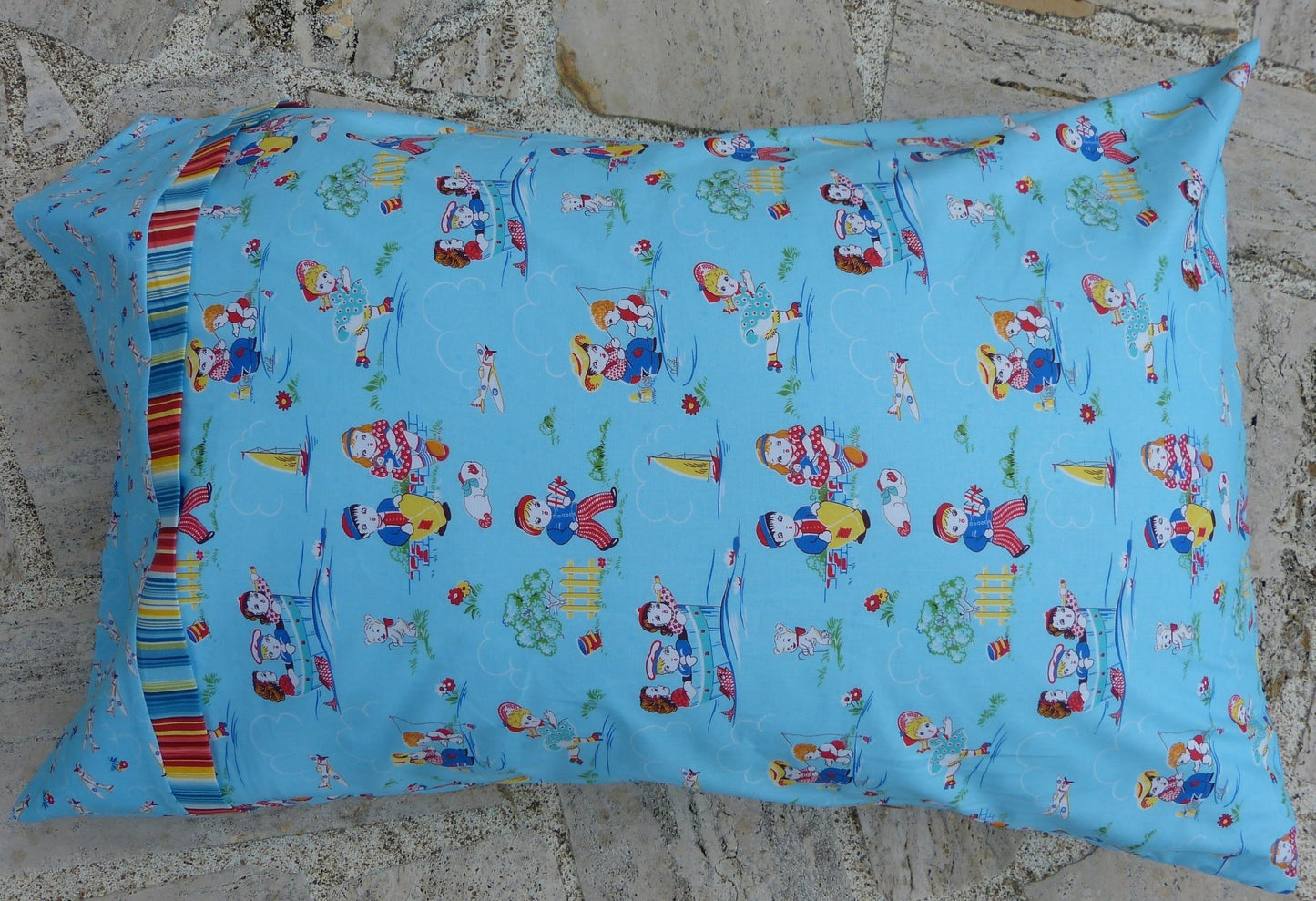 Les tissus nécessaires pour la réalisation d'une taie d'oreiller sont coupés à la main par Lili. Dimensions du produit fini: 75 x 50 cm.